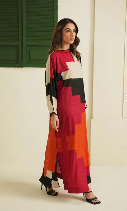 Design: Long, flowing Abaya/Maxi Dress with a relaxed fit and wide, comfortable sleeves.