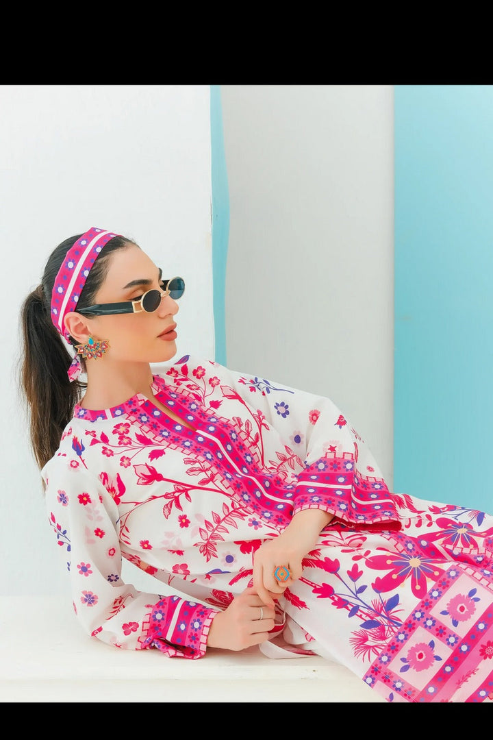 Make a bold style statement with this stunning two-piece co-ord set that celebrates vibrant femininity and contemporary elegance. This eye-catching ensemble features a beautiful white base adorned with hot pink and coral floral motifs, creating a perfect balance of sophistication and playful charm.